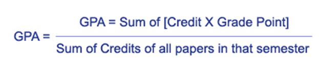 The GPA is determined by multiplying the grade point of each course with its credit hours. The total is then divided by the overall credit hours taken during that semester.- GPA Formula: